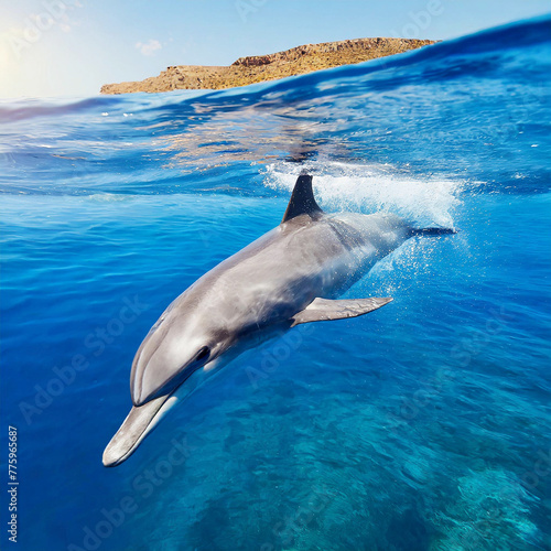 Naklejka premium 바닷속을 헤엄치는 돌고래
