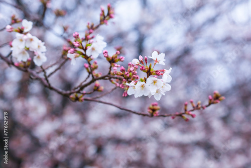 Fototapeta premium 雨の日の綺麗に咲いた桜の花 ソメイヨシノ