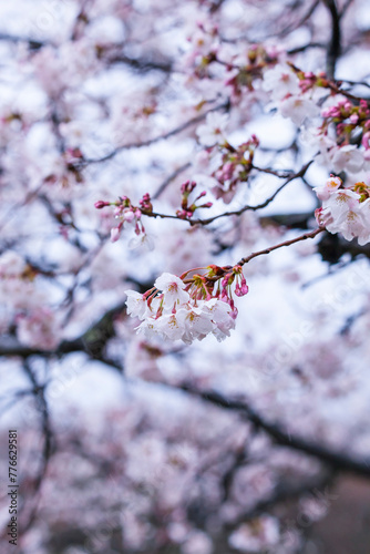 Obraz premium 雨の日の綺麗に咲いた桜の花 ソメイヨシノ