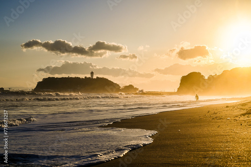 © Kazu8, Fototapeta premium 夕焼けの神奈川県湘南江の島と七里ヶ浜