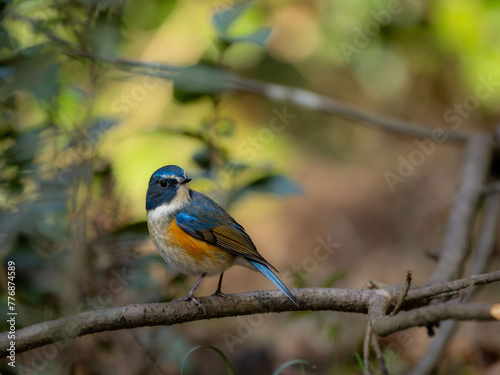 Fototapeta premium 森の中で枝に留まっているルリビタキの雄