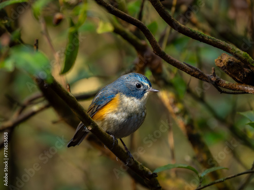 Fototapeta premium 森の中で枝に留まっているルリビタキの雄