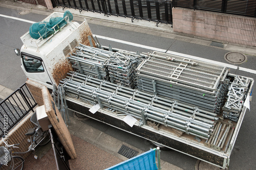 Obraz premium 住宅建設 トラックに積載された足場