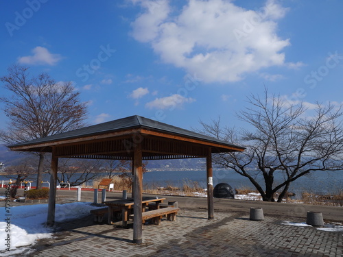 © 03A1049H, Obraz premium 雪の残る公園の東屋