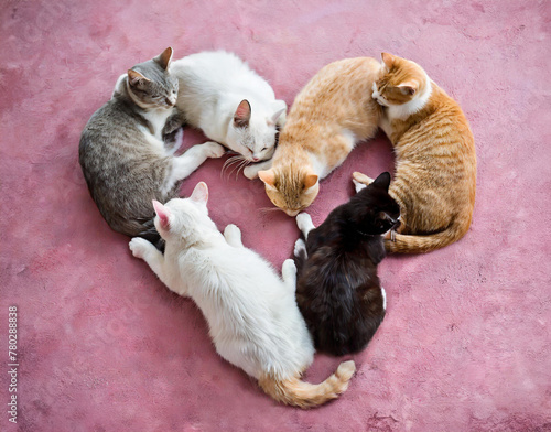 © muni, Obraz premium 寝てる猫が集まってハートになっている