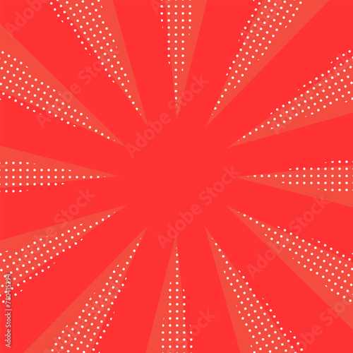 Obraz premium 水玉のポップな模様が入った赤色のサンバースト集中線背景イラスト