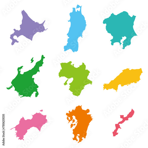 © elico-polo, Naklejka premium 日本の9つの地方のアイコン、カラフルで明るい色