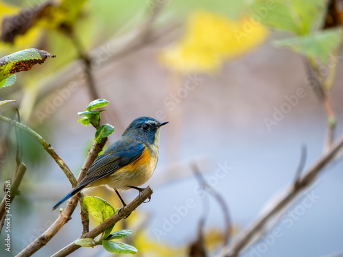 Fototapeta premium 森の中で枝に留まっているルリビタキの雄