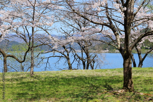 © So Takinoiri, Obraz premium 滋賀県 春の余呉湖畔の桜