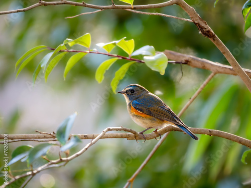 Fototapeta premium 森の中で枝に留まっているルリビタキの雄