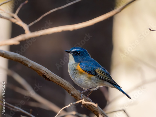© STOCK THE WORLD, Obraz premium 森の中で枝に留まっているルリビタキの雄