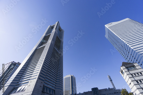 Obraz premium 横浜みなとみらい21イメージ 快晴青空 見上げる