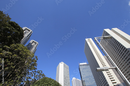 © Quro, Obraz premium 雲のない快晴なビル郡