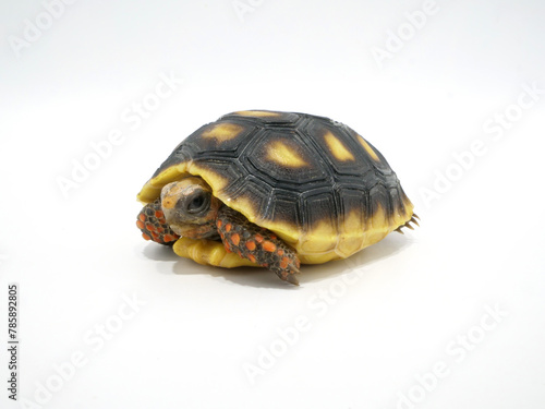 Obraz premium 甲羅にこもるアカアシガメの子供