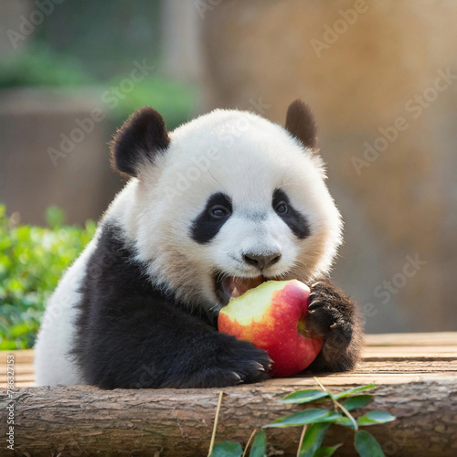 Obraz premium 귀여운 아기판다가 사과를 먹고 있는 모습