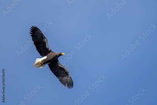 Fototapeta premium 青空バックに頭上を悠然と飛ぶオオワシ