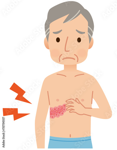 Fototapeta premium 帯状疱疹ができて痛みがある男性 症状