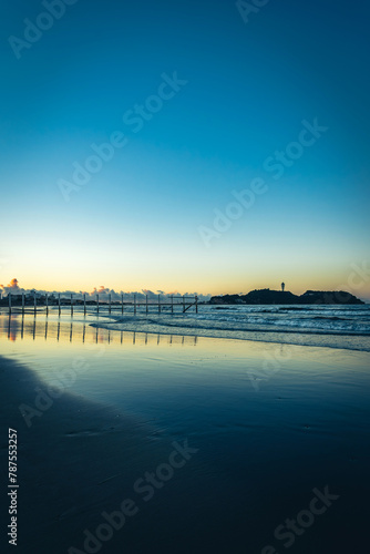 Fototapeta premium 湘南の白い杭と海と江ノ島