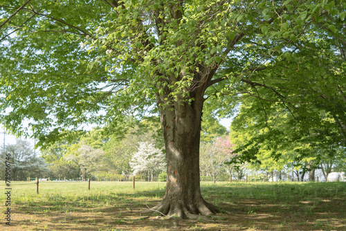 Obraz premium ぼかした芝地に大きな木【智光山公園】日本埼玉県
