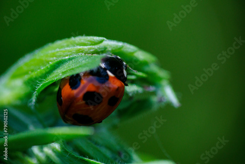 Obraz premium アブラムシを食べるナナホシテントウ