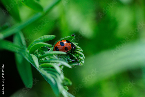 Obraz premium アブラムシを食べるナナホシテントウ