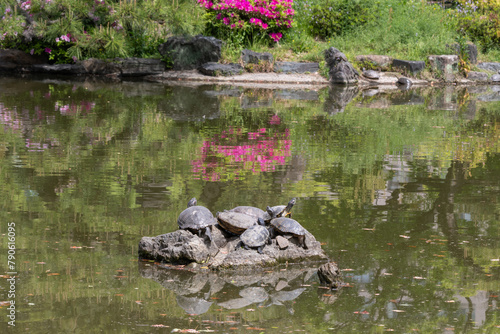 Obraz premium 甲羅干しする亀(愛知県名古屋市)