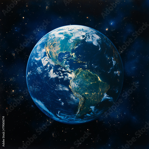 © 藤井 大揮, Obraz premium 地球のアメリカ南部と南アメリカの夜の光