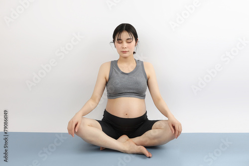 Fototapeta premium マタニティヨガ ストレッチ 座る スポーツ 20代女性