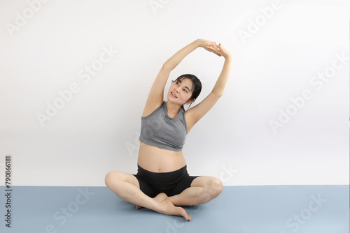 Obraz premium マタニティヨガ ストレッチ 座る スポーツ 20代女性