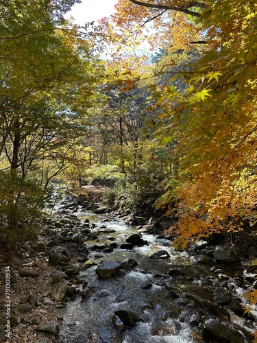 © Logmotion, Obraz premium 紅葉の美しい小川が流れる日本のキャンプ場