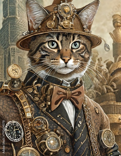© Kuron Dejiro, Obraz premium スチームパンク世界の猫の冒険家