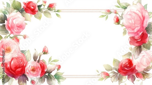 © mamemo, Obraz premium バラの水彩フレーム_4