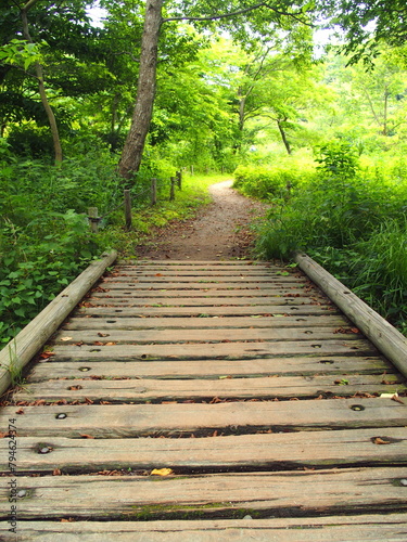 © smtd3, Obraz premium 新緑の林と木道のある初夏の21世紀の森と広場風景