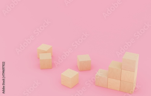 © 四ッ谷, Obraz premium 背景素材_積み木_ピンク
