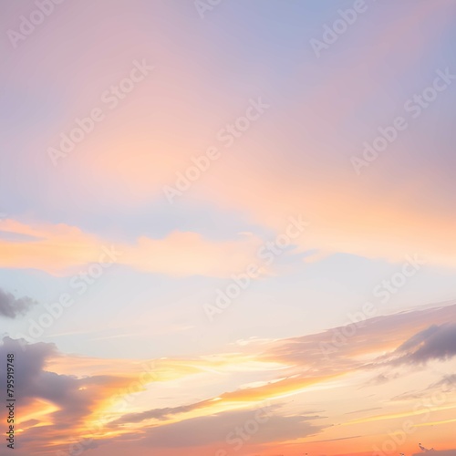 Obraz premium 夕焼けの淡いオレンジと水色の爽やかな空