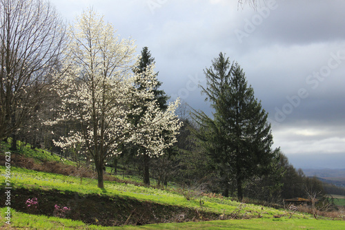 © まり子 佐藤, Fototapeta premium 春の野山の満開のコブシ