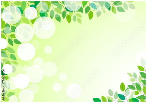 Fototapeta premium 緑の葉っぱの美しい新緑フレーム背景6緑