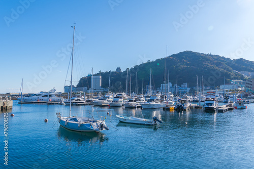 © miko_neko, Fototapeta premium 個人所有のクルーザーが並ぶ熱海のボート置き場の風景