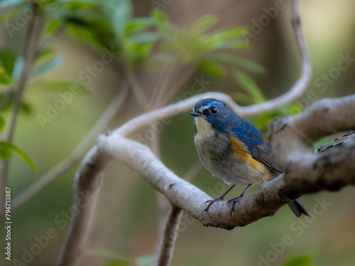 Obraz premium 深い藪の奥でリラックスしているルリビタキの雄