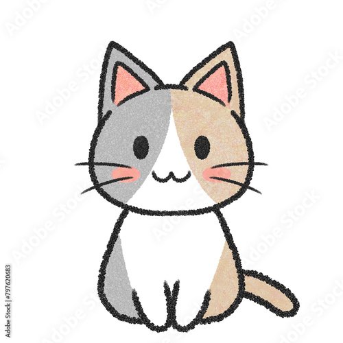 Obraz premium 座っている三毛猫のイラスト