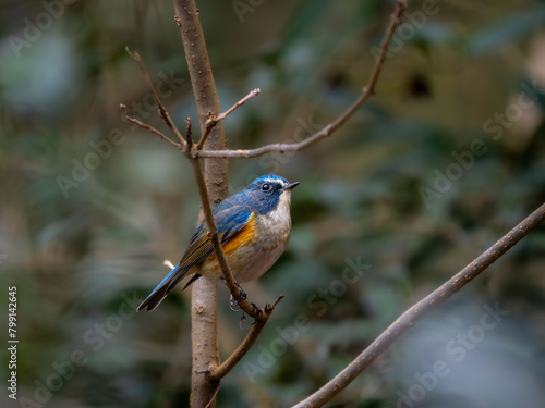 Fototapeta premium 森の中で枝に留まっているルリビタキの雄