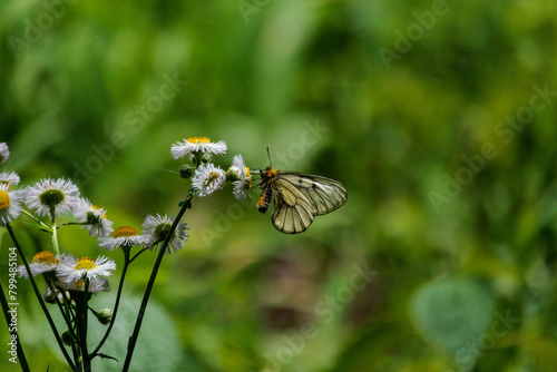 Obraz premium デイジーの蜜を吸うウスバシロチョウ
