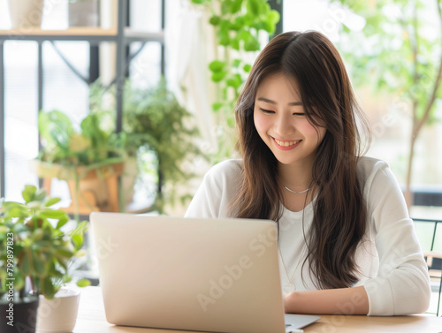 © yapiko, Fototapeta premium ノートパソコンを見る女性