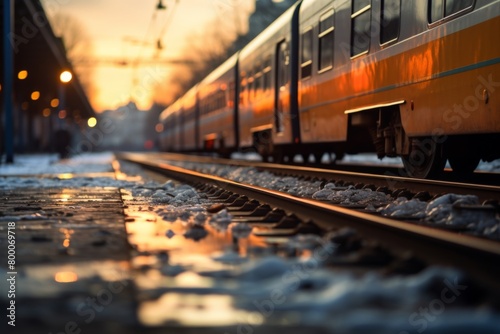 © DESIGN ARTS, Obraz premium 夕暮れと線路