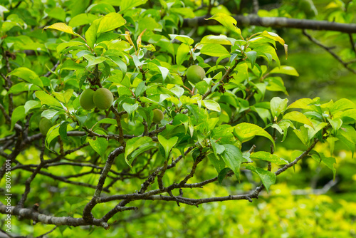 Obraz premium 実をつけ始めた梅の木 鳥取県 樗谿公園