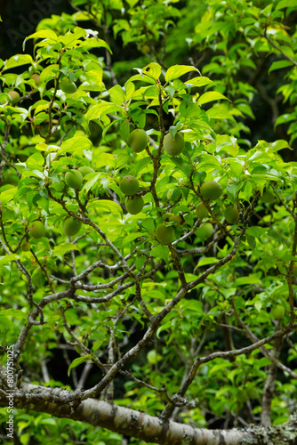 Obraz premium 実をつけ始めた梅の木 鳥取県 樗谿公園