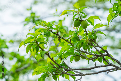 Obraz premium 実をつけ始めた梅の木 鳥取県 樗谿公園
