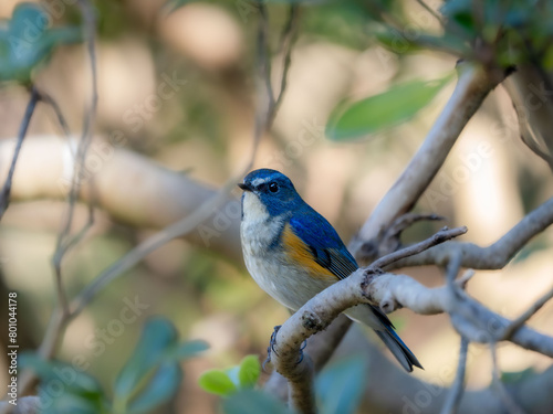 © STOCK THE WORLD, Obraz premium 森の中で枝に留まっているルリビタキの雄