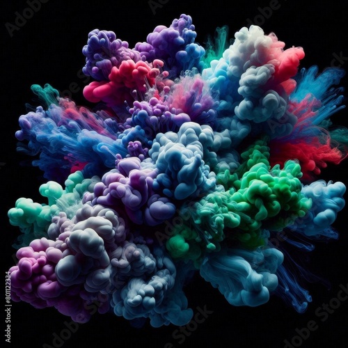 © Vitaly, Fototapeta premium Крупный план разноцветного дыма в воздухе на черном фоне