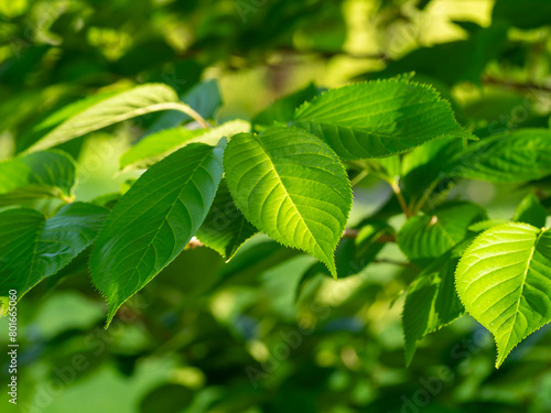 Fototapeta premium 鮮やかな緑の桜の葉
